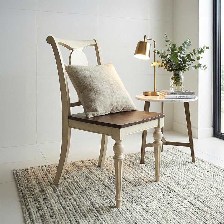 "깔끔한 엔틱식탁 튼튼하고 고급스러워요~ 상판색이 진해도 전체적으로 환한 느낌으로 마음에 쏙 들어요. 작은 6인식탁으로 39폄 주방에 딱이네요^^" - 출처 : 미라지 스마트스토어 구매 고객님의 후기 입니다.