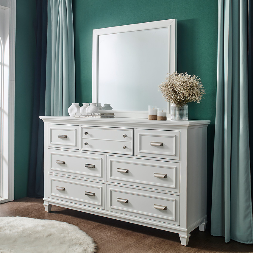 B5611-WHT Panel Bed (침대+협탁+화장대)