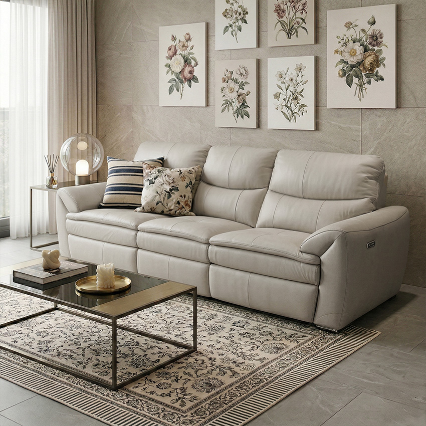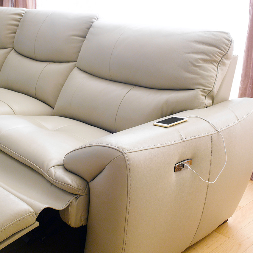 E1455-IvoryLeather Recliner Sofa
