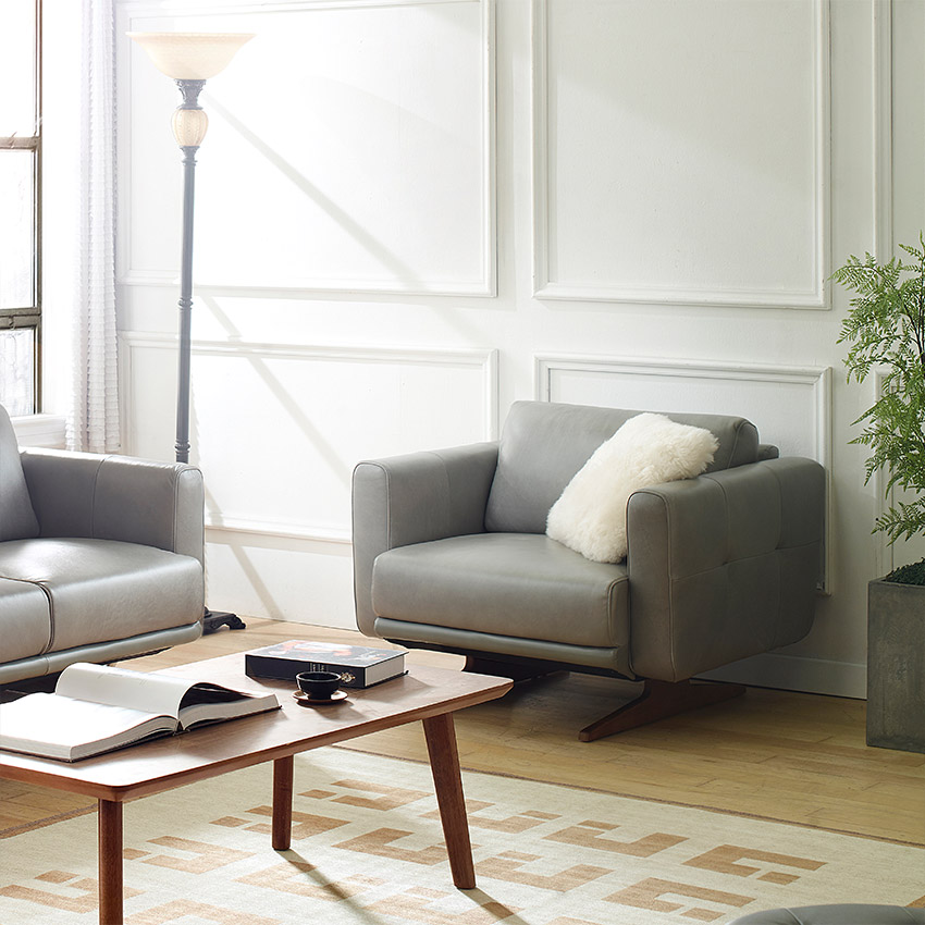 10046-C-Grey Leather Single Chair