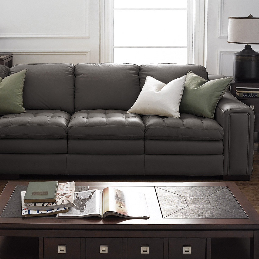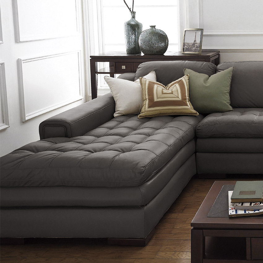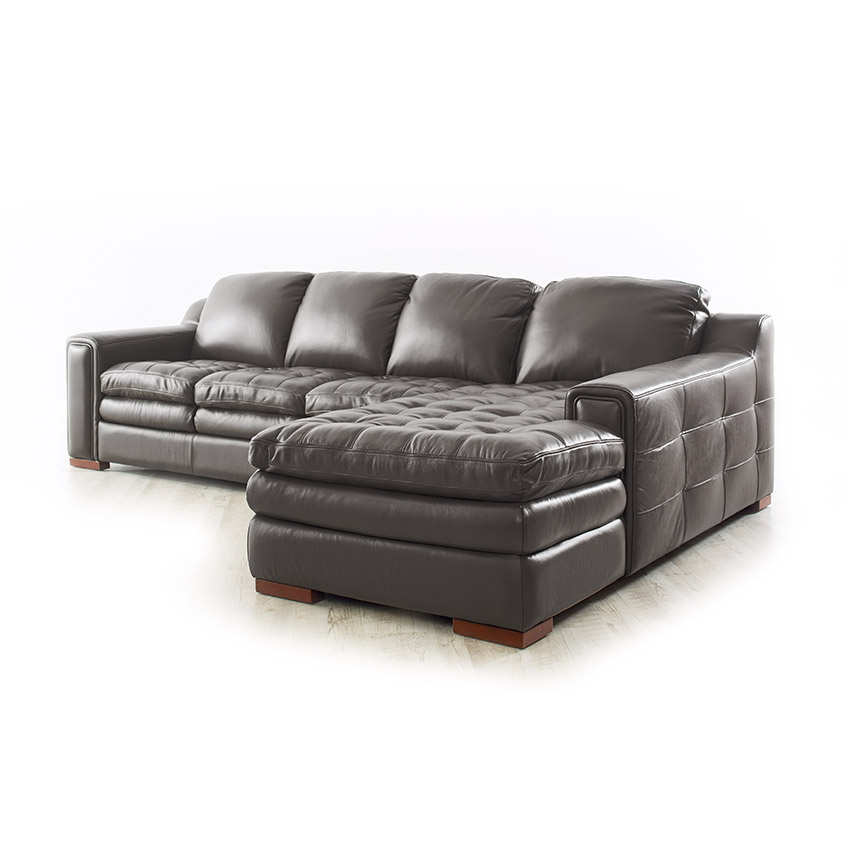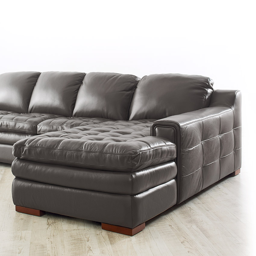 7491-Coastal GreyLeather Chaise Sofa