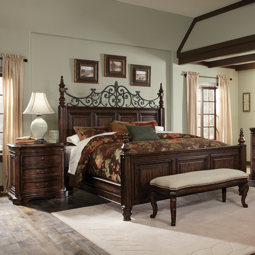 [ OUTLET ] 72185 Coronado King Poster Bed ( 침대 + 협탁 + 화장대 )